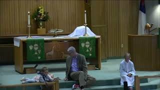 Family Life Minister Curtis used the church’s green carpet to teach the children about Jesus, our Good Shepherd. He explained how different carpet colors in churches can symbolize God’s promises—red for Christ’s blood, blue for baptism, and green for pastures. The green carpet reminds us that we are sheep in God’s pasture, fed and cared for through His Word, sacraments, and love. Just as a shepherd leads sheep to green pastures, Jesus leads us, nourishes us, and makes us His own flock.