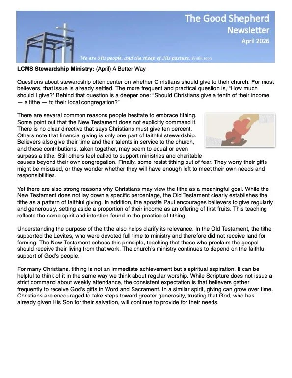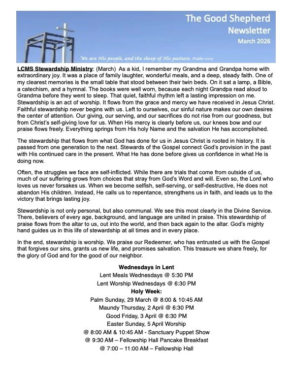 Maundy Thursday: (2 April 2026) The name for this day comes from the Latin word "mandatum," meaning "commandment." It refers to the two "new" commandments our Lord gave to His disciples on this day. The first is "love one another," and the second is "do this in remembrance of Me." In the early church, Maundy Thursday was also the day on which those who had fallen away from the Church were restored to full fellowship with other believers after having observed the 40-day penitential season of Lent. Today we are reminded of the reconciliation we have because of Christ’s body and blood given for the forgiveness of our sin, and the example of self-giving love shown by our Lord as He washed the feet of His disciples.